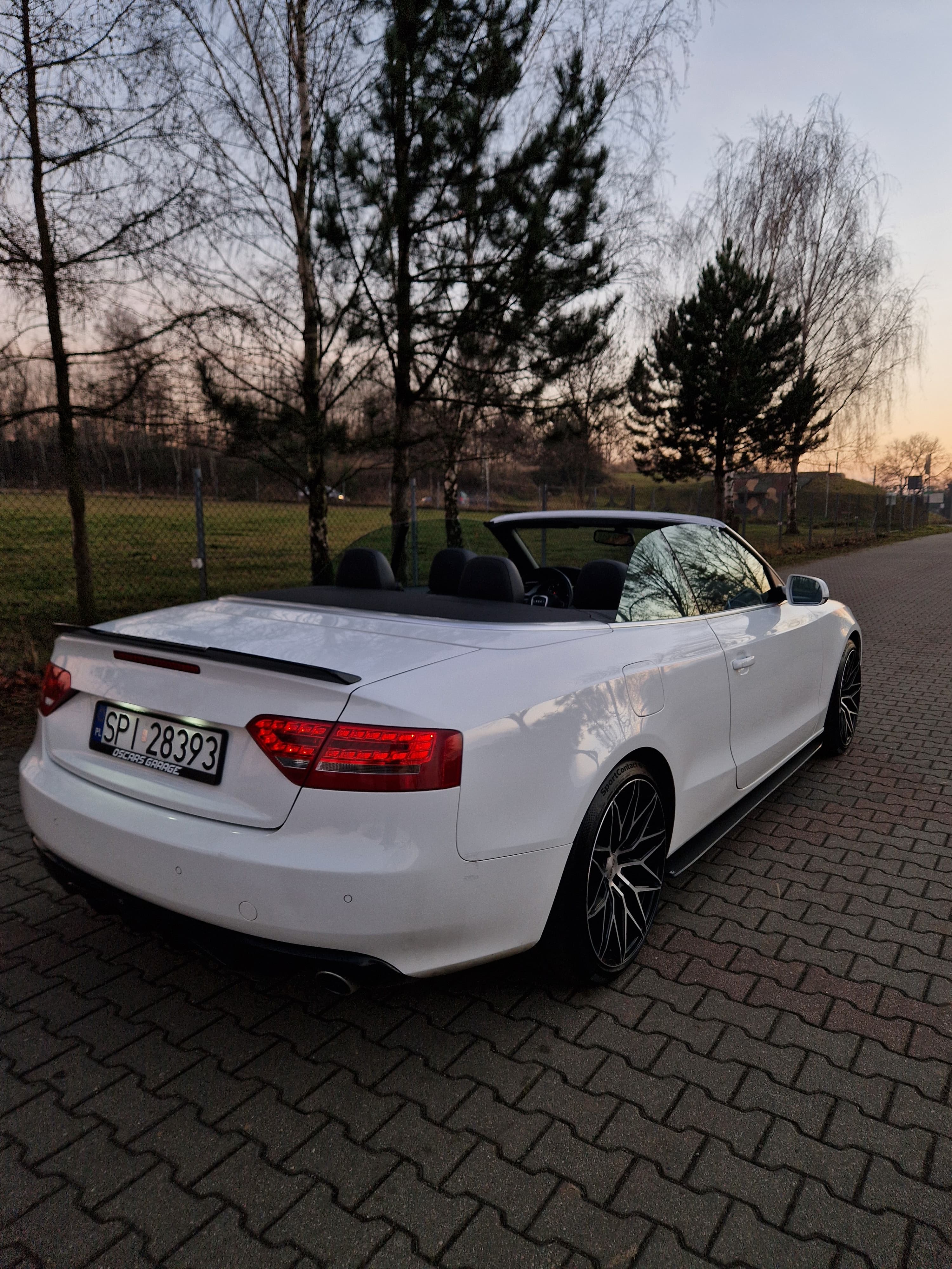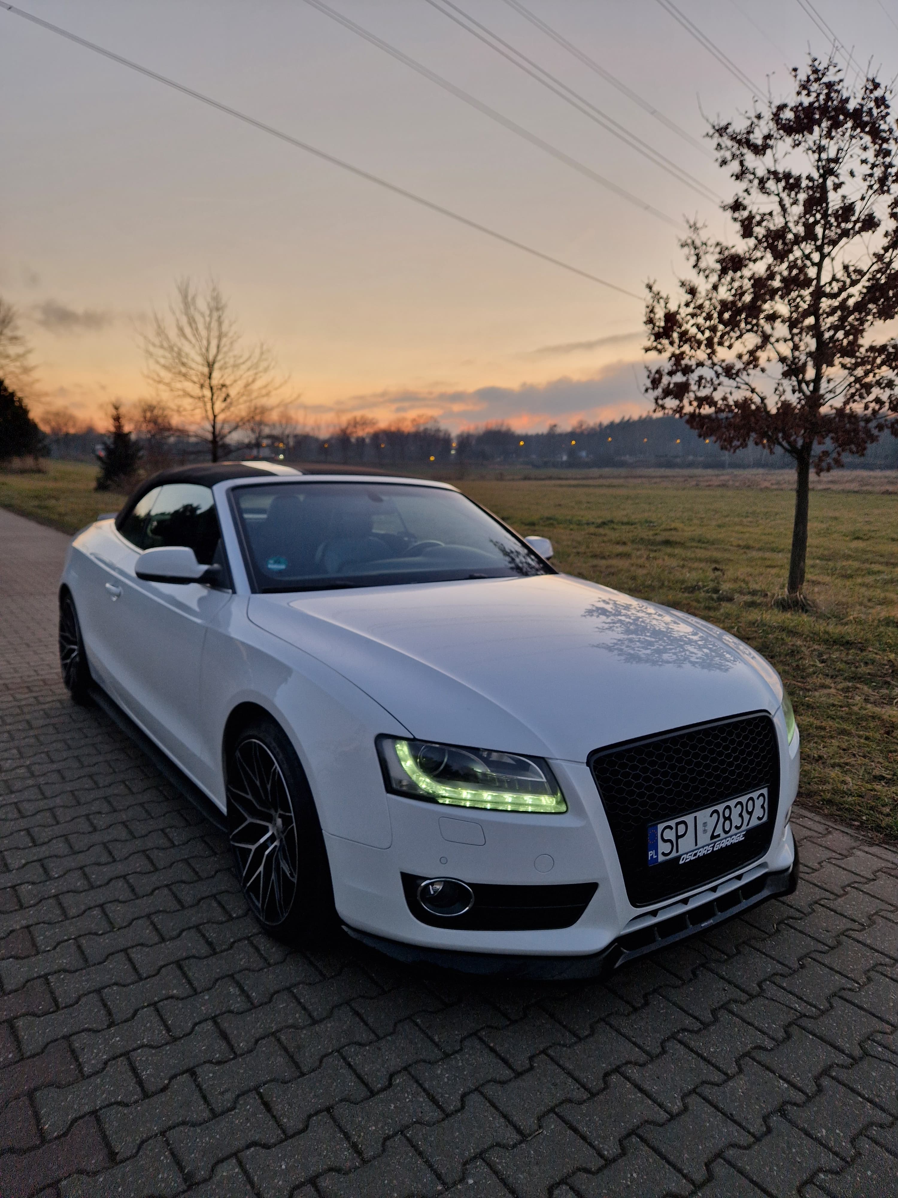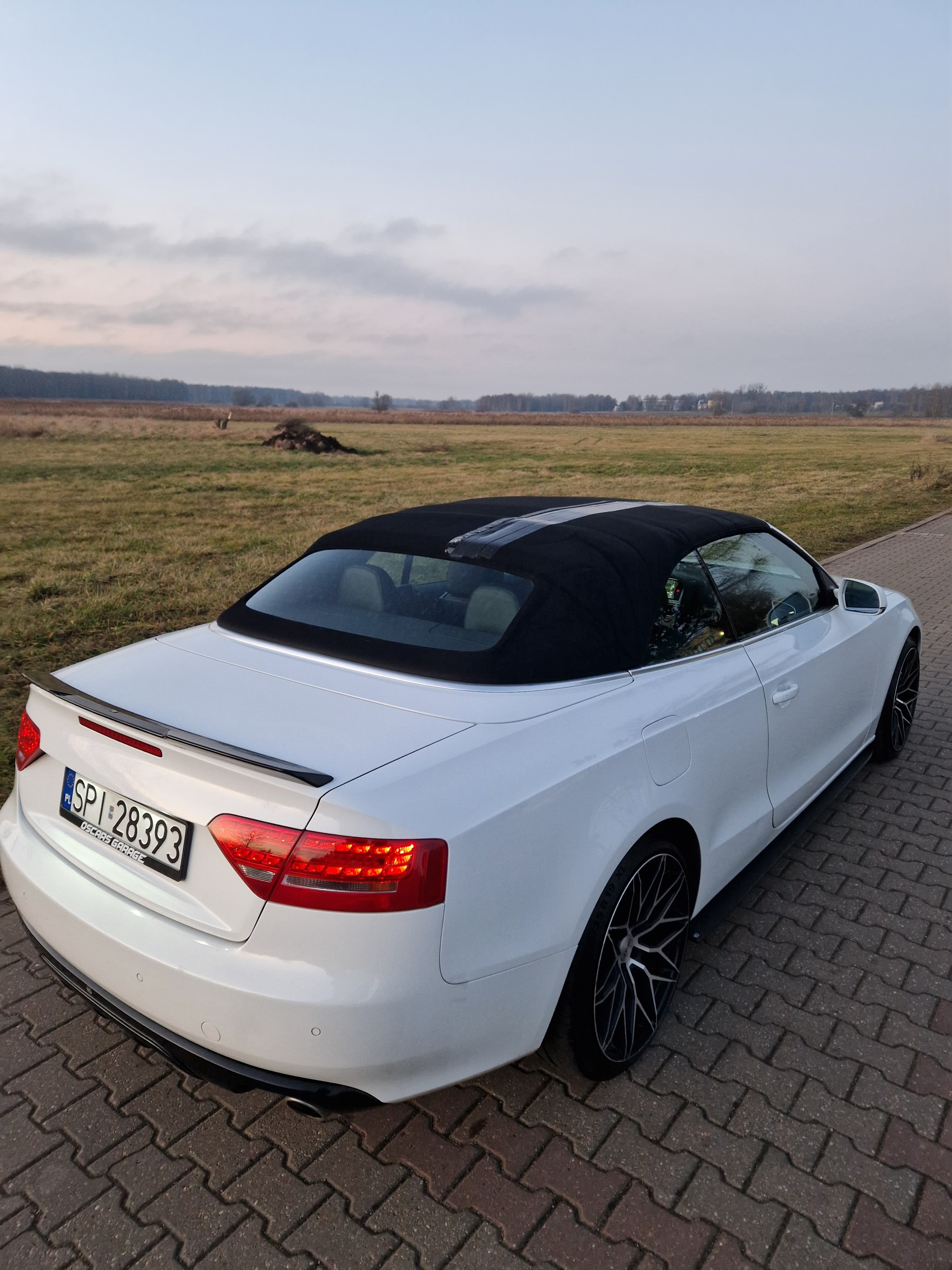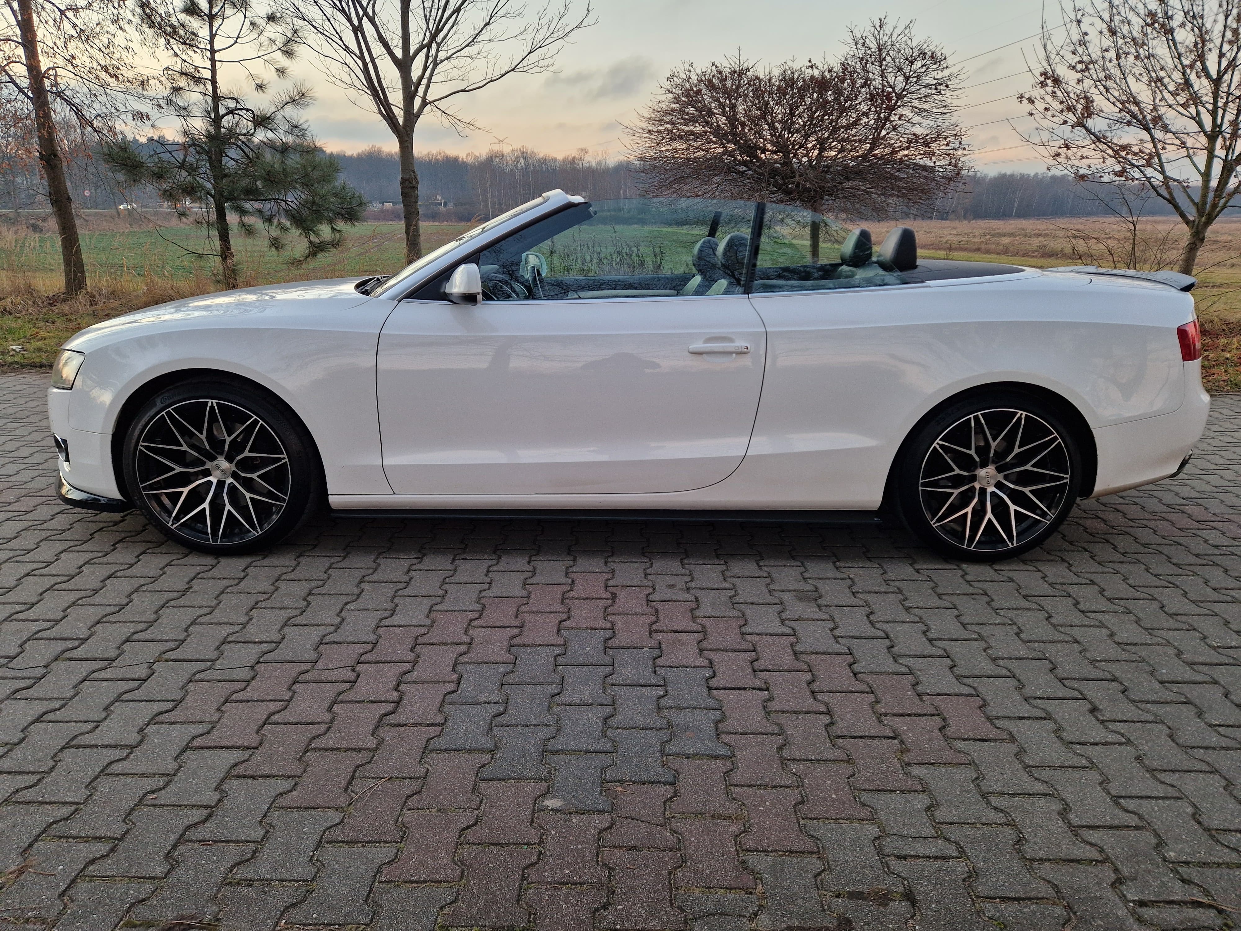 Sprzedam audi a5 cabrio w zadbanym białym kolorze, środek auta również bardzo zadbany nie wskazuje kompletnie na aktualny prawdziwy przebieg, do końca serwisowane w aso potwierdzone książeczkami, ostatni serwis w czerwcu 2025, w maju 2024 wymieniany olej w skrzyni biegów - pracuje i zmienia biegi rewelacyjnie. W zawieszeniu jak to mówią nic nie stuka nie puka, czuć że auto nie jest wybite. Felgi 19 marki DOTZ wraz z nowymi oponami Continental SportContact 6 w rozmiarze 255/35/19. Silnik zbiera sie jak na 3.0 tdi przystało a przy tym mało pali jak na to co oferuje, rozrząd bez najmniejszych objawów czy odgłosów. Multimedia MMI 3g z mapami polski i dyskiem twardym, windschott czyt wiatrołap, czujniki parkowania przód/tył, grzane elektryczne pompowane fotele, czujniki martwego pola, podajniki pasów, łopatki przy kierownicy - bardzo fajna wersja wyposażenia.