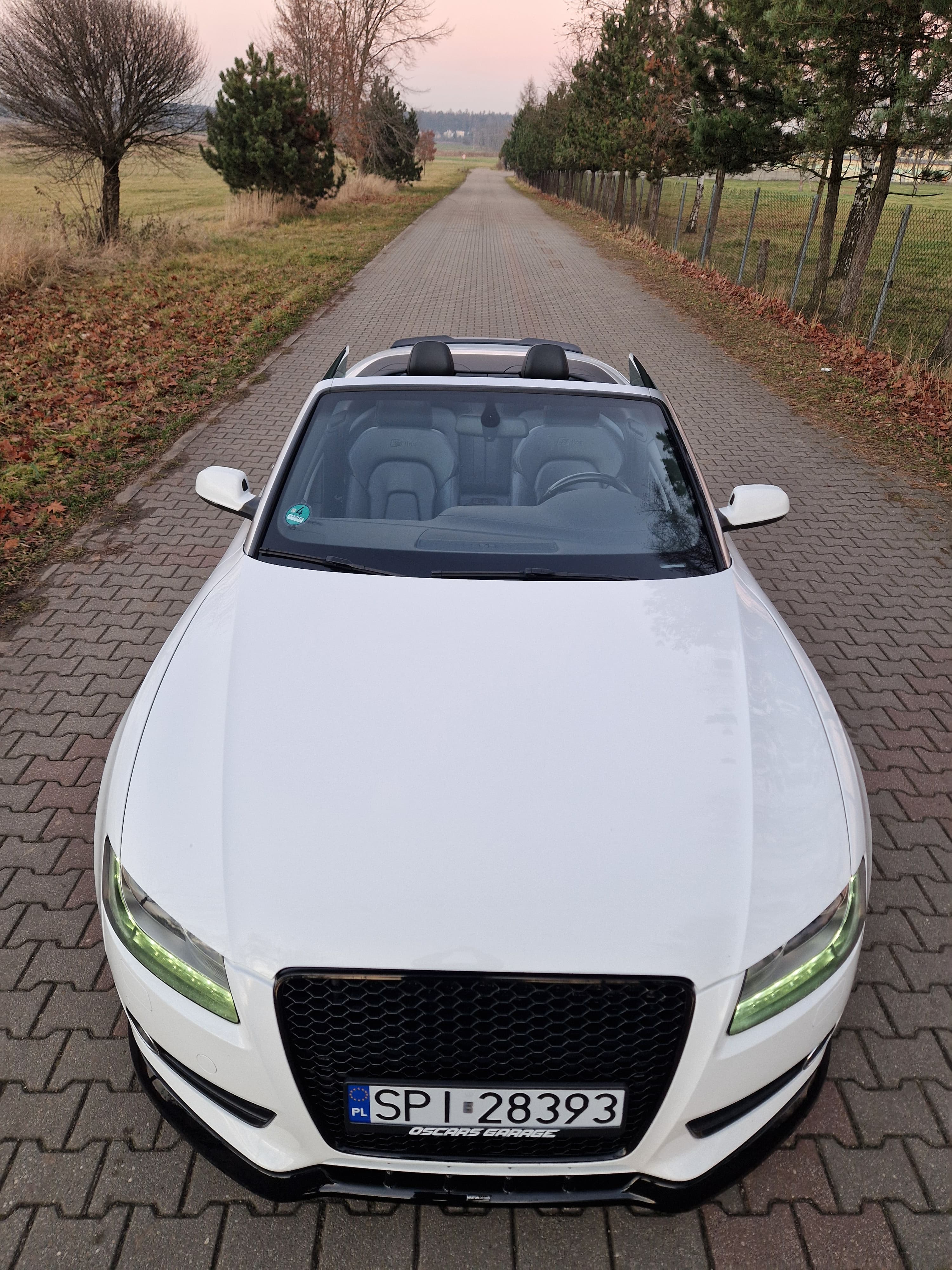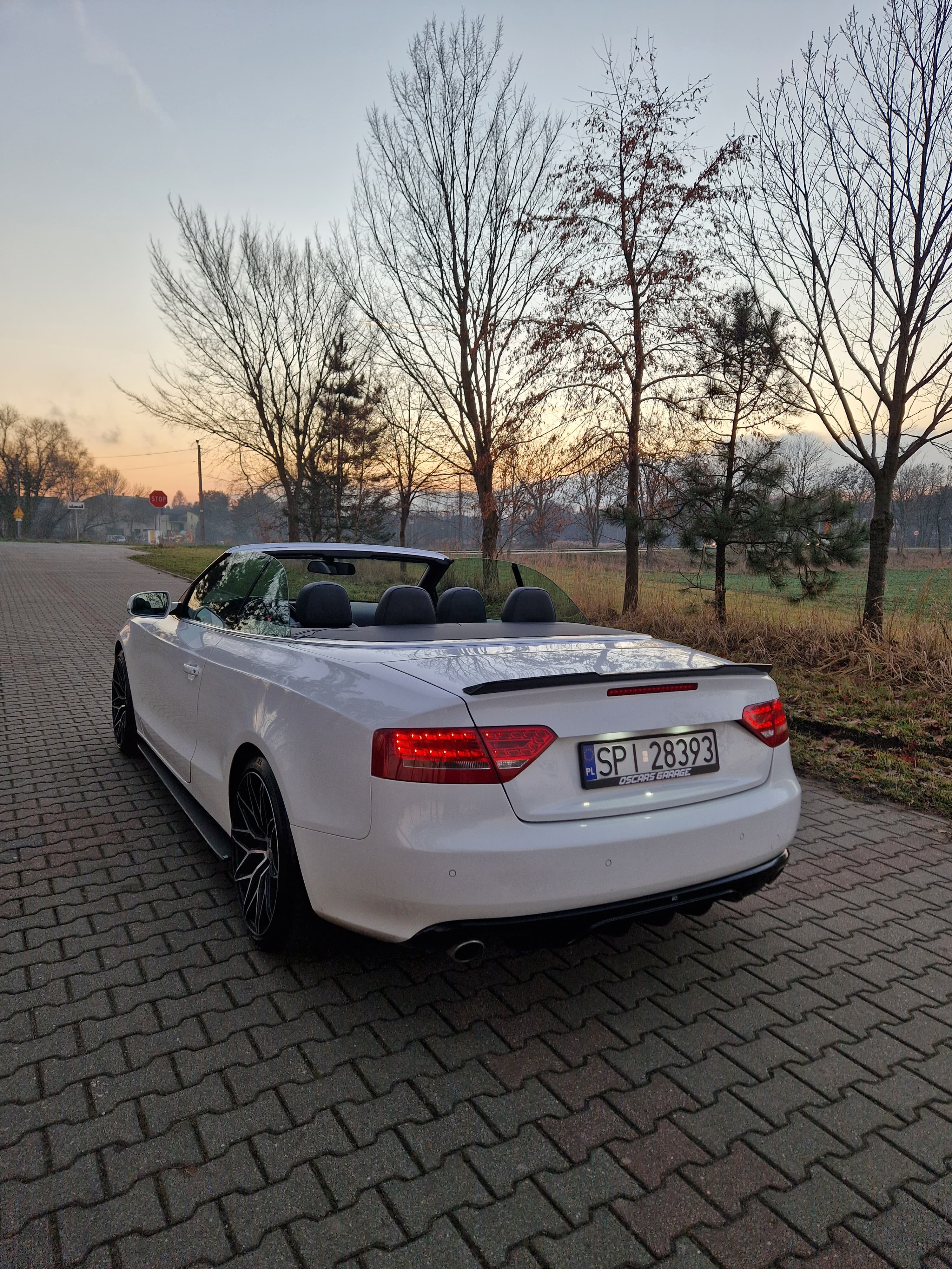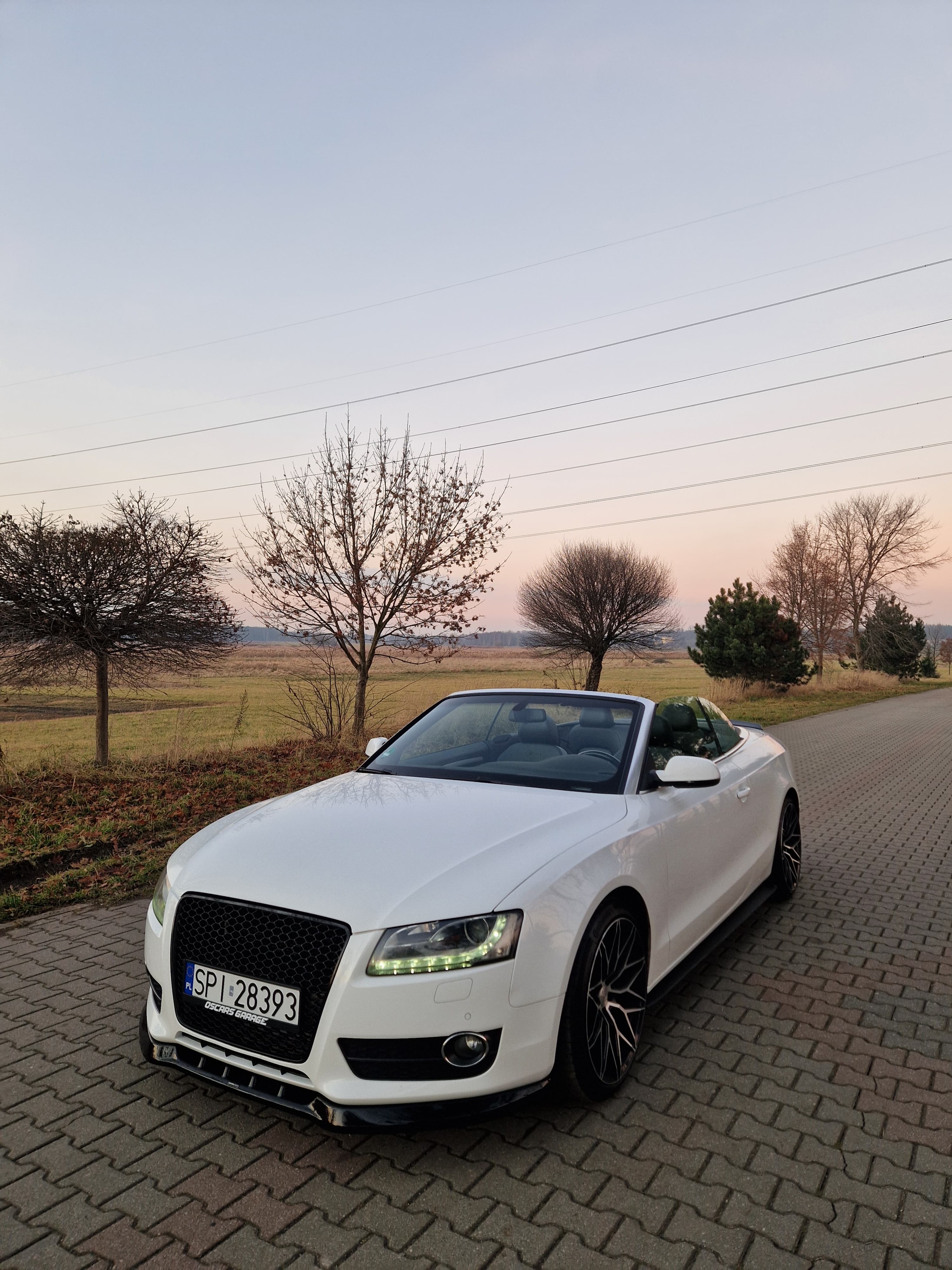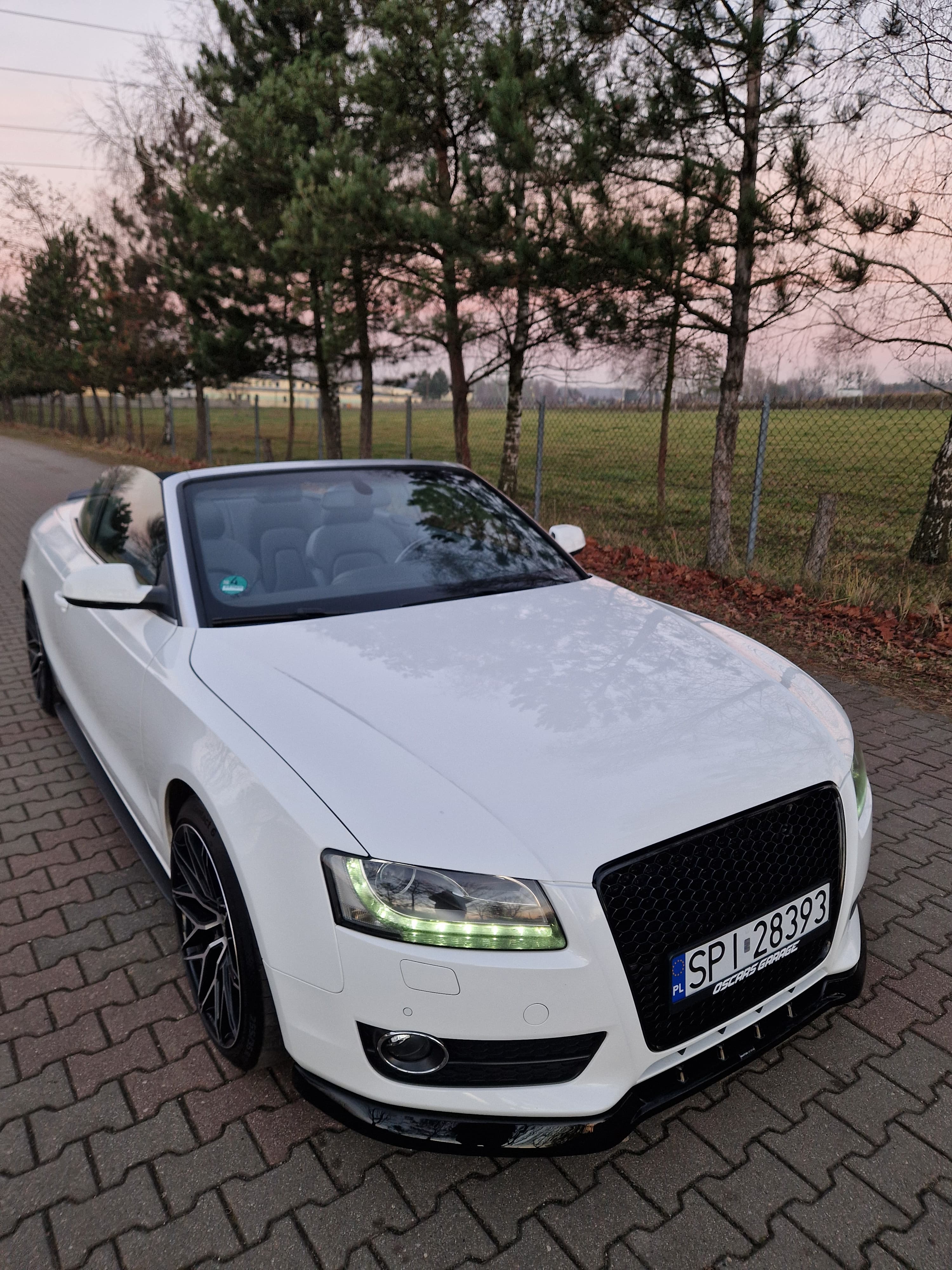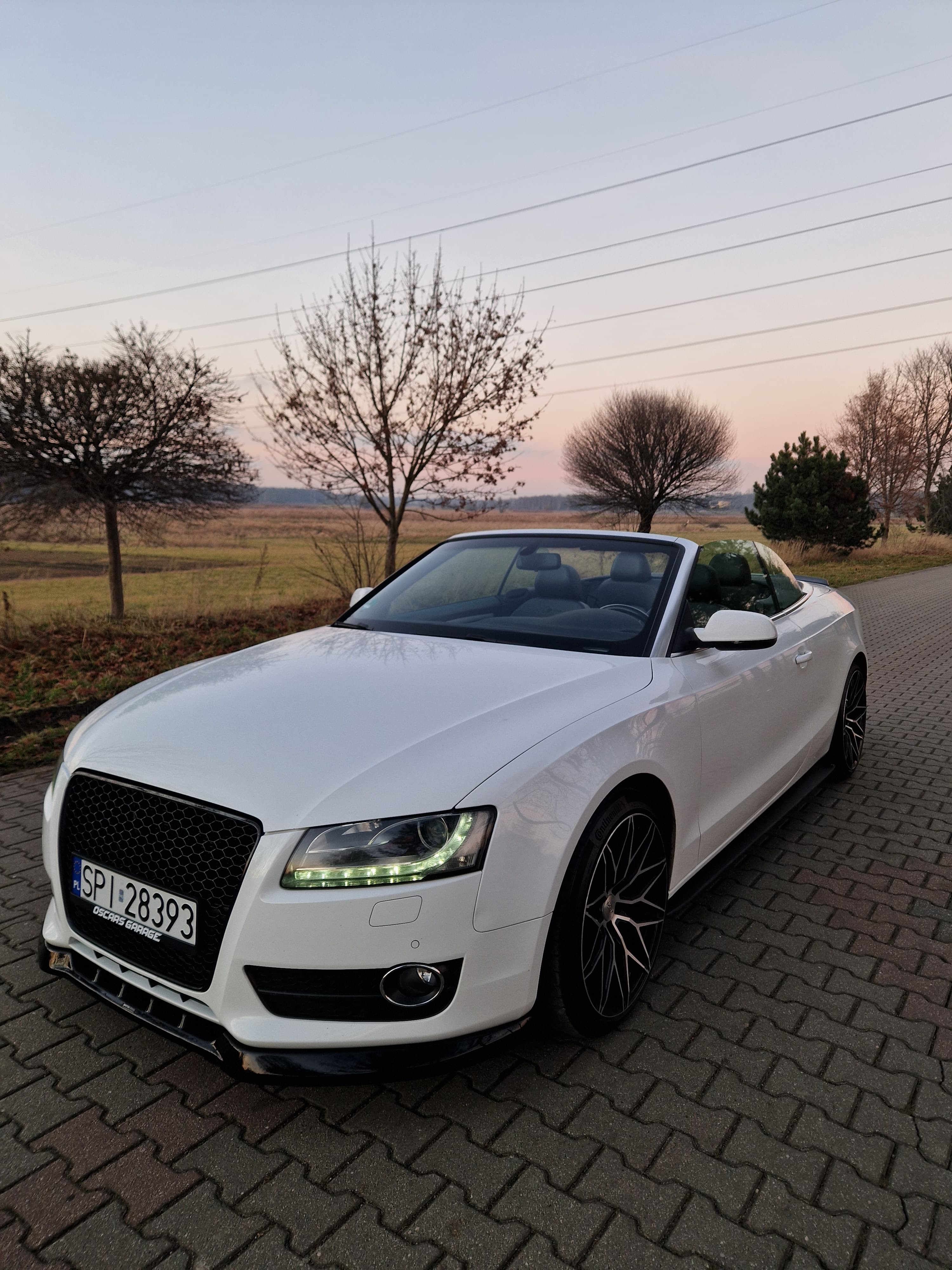 Sprzedam audi a5 cabrio w zadbanym białym kolorze, środek auta również bardzo zadbany nie wskazuje kompletnie na aktualny prawdziwy przebieg, do końca serwisowane w aso potwierdzone książeczkami, ostatni serwis w czerwcu 2025, w maju 2024 wymieniany olej w skrzyni biegów - pracuje i zmienia biegi rewelacyjnie. W zawieszeniu jak to mówią nic nie stuka nie puka, czuć że auto nie jest wybite. Felgi 19 marki DOTZ wraz z nowymi oponami Continental SportContact 6 w rozmiarze 255/35/19. Silnik zbiera sie jak na 3.0 tdi przystało a przy tym mało pali jak na to co oferuje, rozrząd bez najmniejszych objawów czy odgłosów. Multimedia MMI 3g z mapami polski i dyskiem twardym, windschott czyt wiatrołap, czujniki parkowania przód/tył, grzane elektryczne pompowane fotele, czujniki martwego pola, podajniki pasów, łopatki przy kierownicy - bardzo fajna wersja wyposażenia.