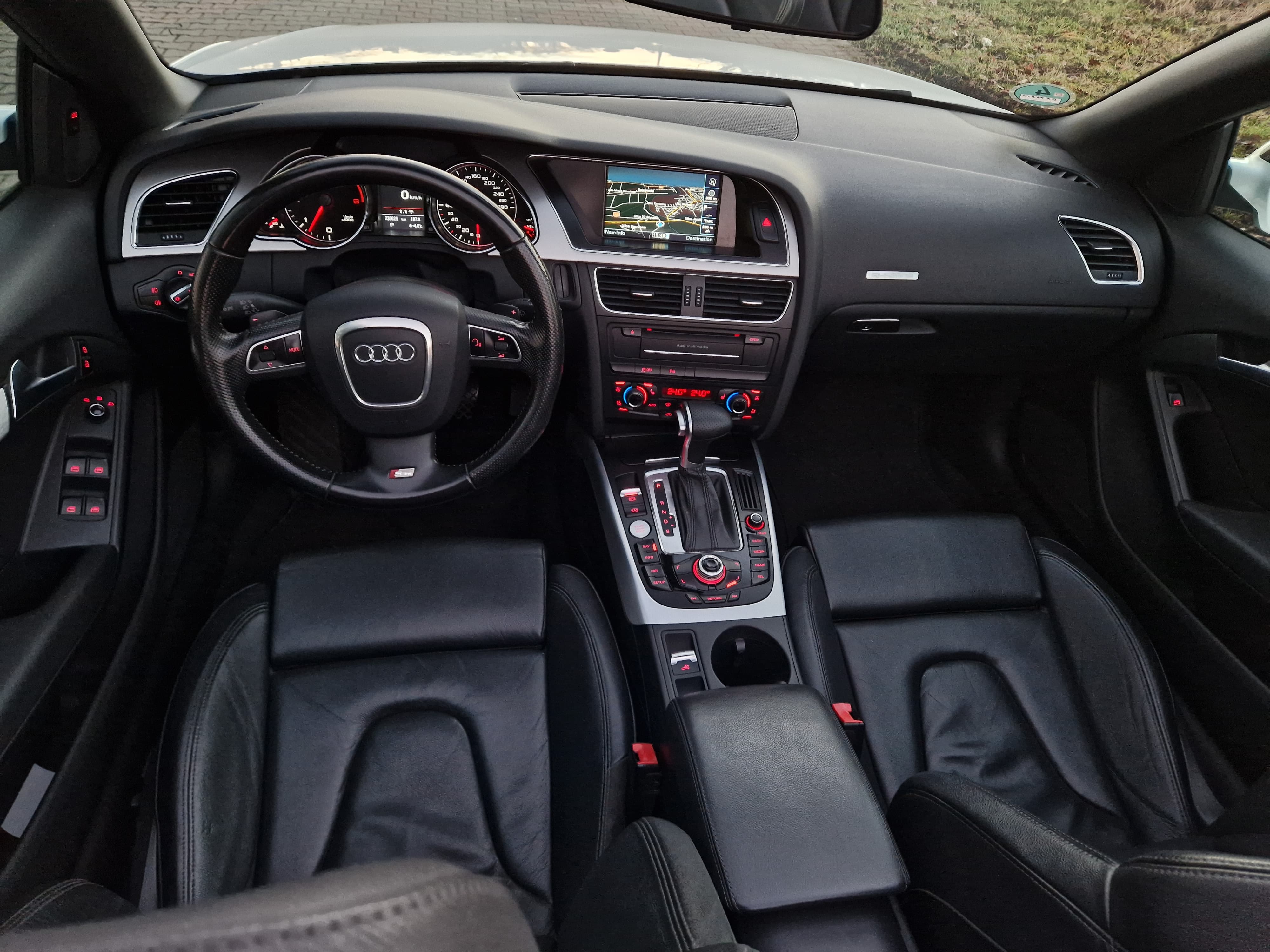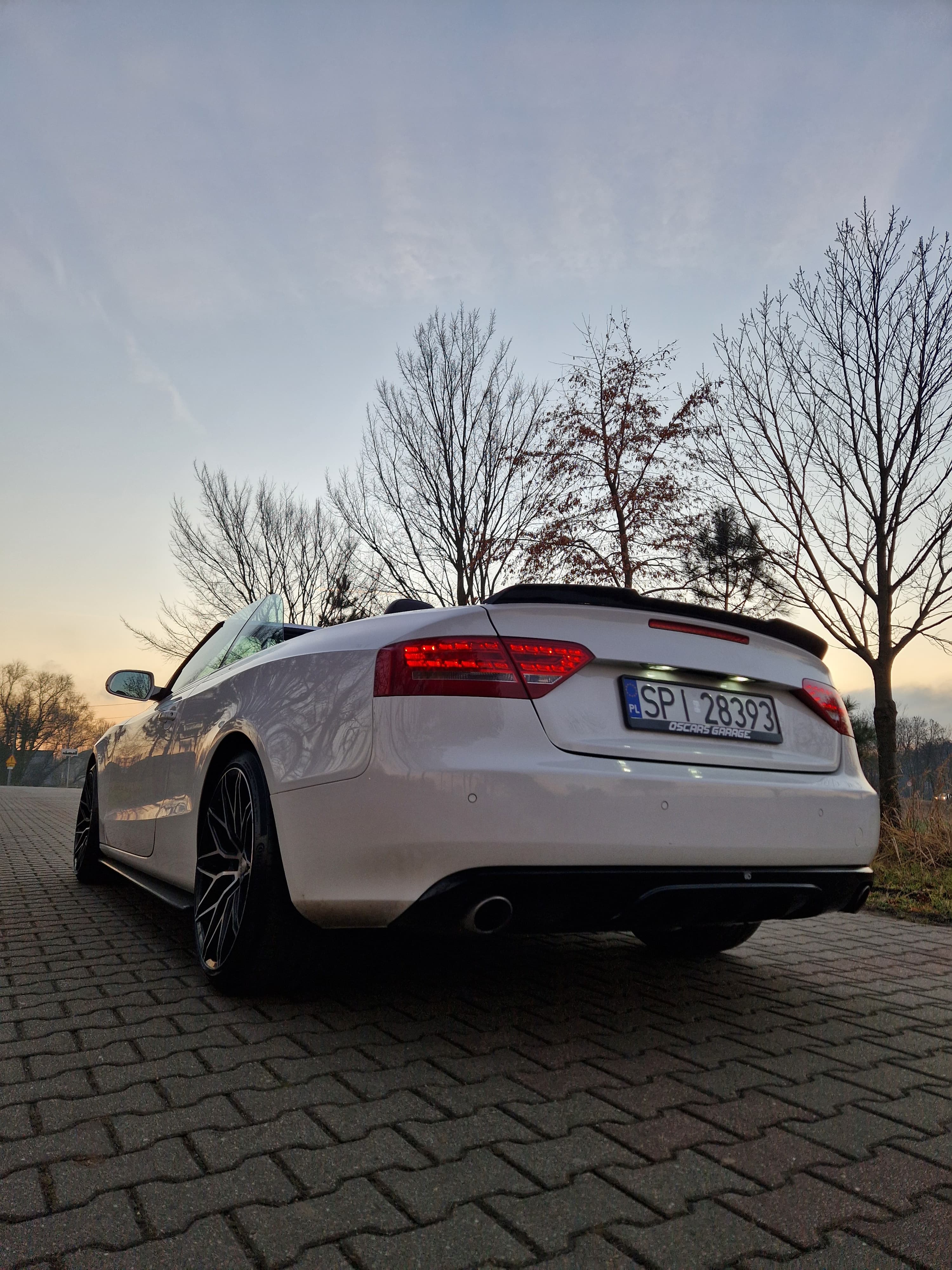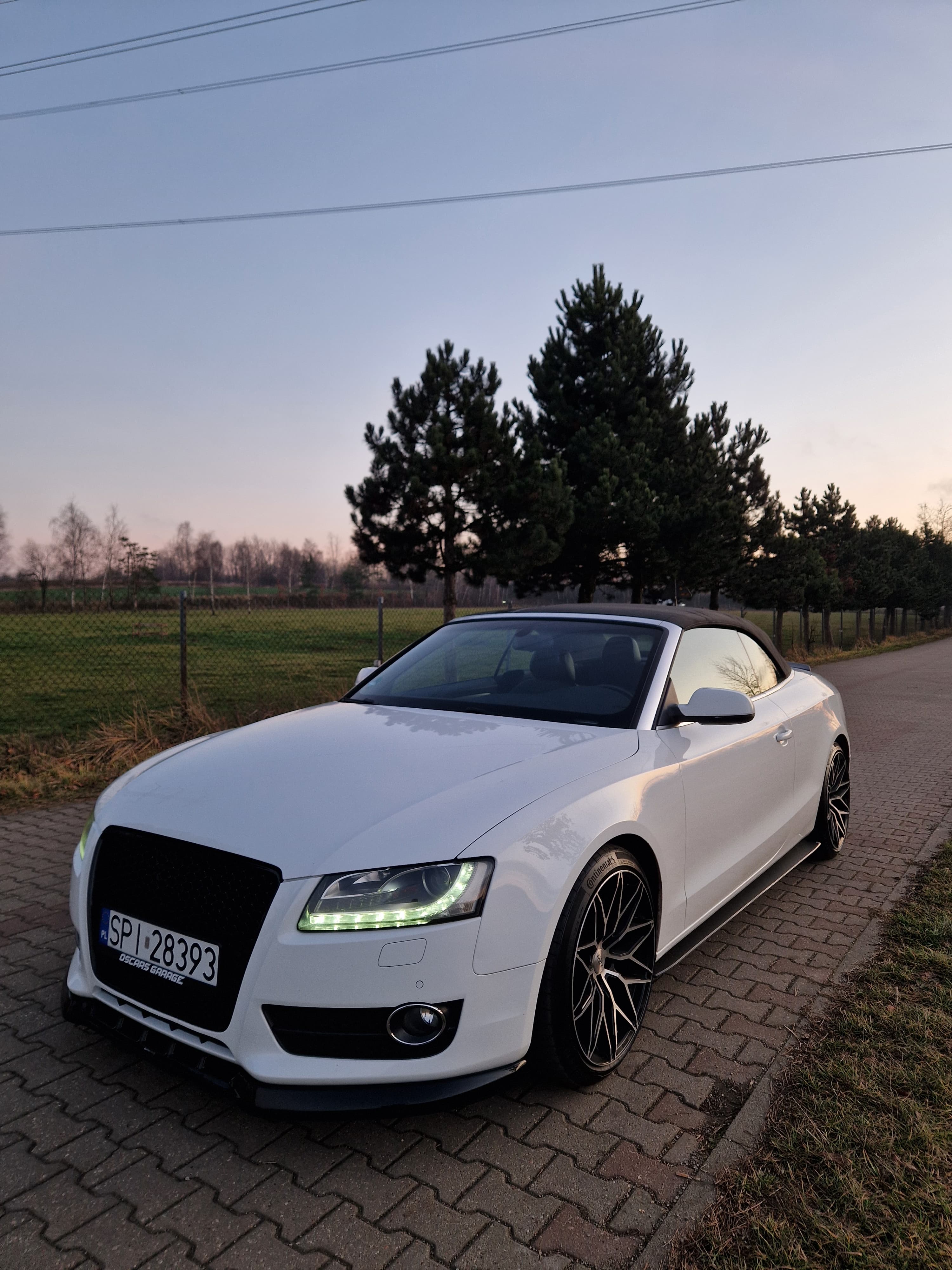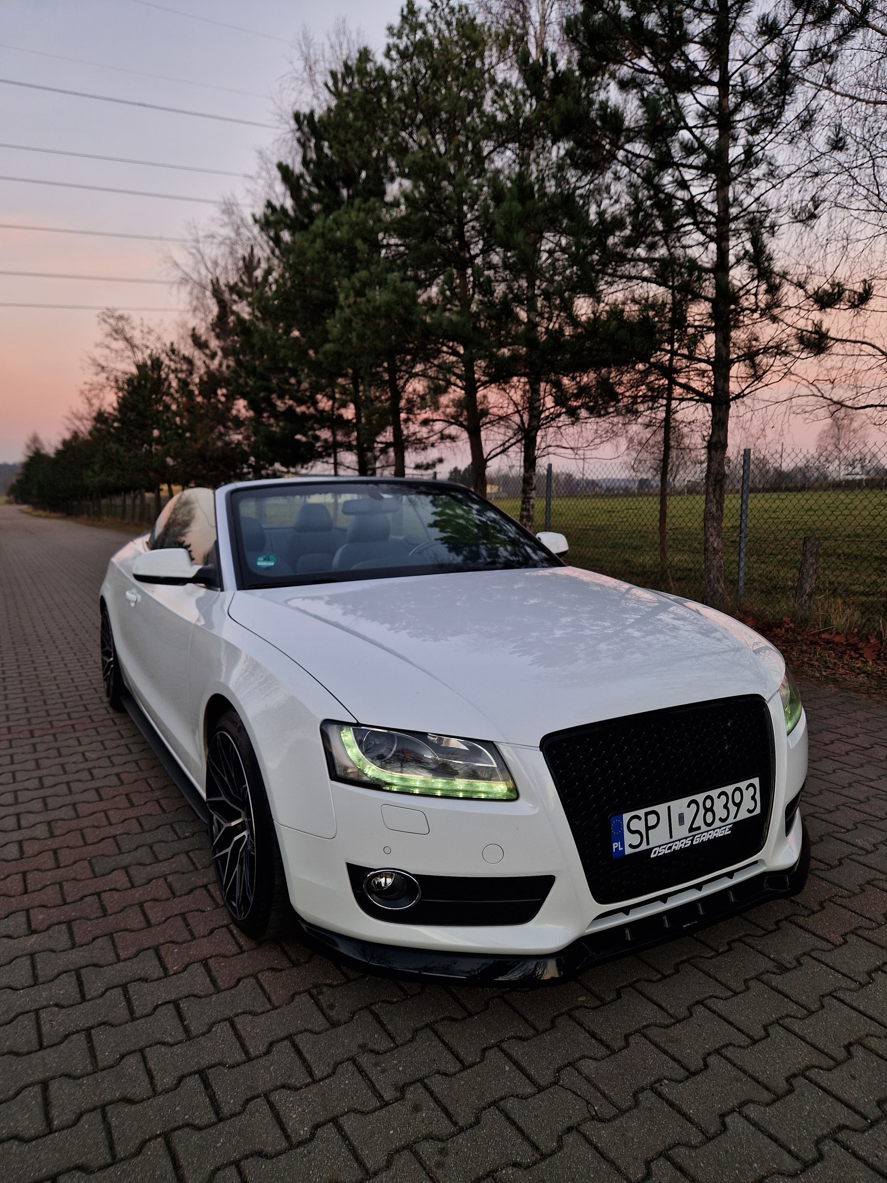 Sprzedam audi a5 cabrio w zadbanym białym kolorze, środek auta również bardzo zadbany nie wskazuje kompletnie na aktualny prawdziwy przebieg, do końca serwisowane w aso potwierdzone książeczkami, ostatni serwis w czerwcu 2025, w maju 2024 wymieniany olej w skrzyni biegów - pracuje i zmienia biegi rewelacyjnie. W zawieszeniu jak to mówią nic nie stuka nie puka, czuć że auto nie jest wybite. Felgi 19 marki DOTZ wraz z nowymi oponami Continental SportContact 6 w rozmiarze 255/35/19. Silnik zbiera sie jak na 3.0 tdi przystało a przy tym mało pali jak na to co oferuje, rozrząd bez najmniejszych objawów czy odgłosów. Multimedia MMI 3g z mapami polski i dyskiem twardym, windschott czyt wiatrołap, czujniki parkowania przód/tył, grzane elektryczne pompowane fotele, czujniki martwego pola, podajniki pasów, łopatki przy kierownicy - bardzo fajna wersja wyposażenia.